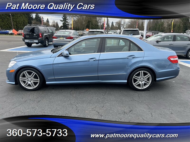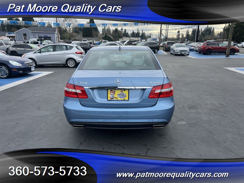 2010 Mercedes-Benz E 350 Luxury 4MATIC — Quartz Blue Metallic exterior, Black Leather interior.