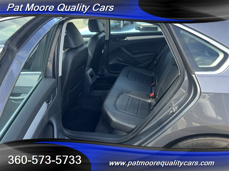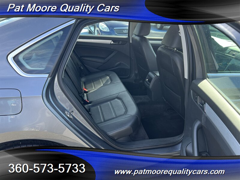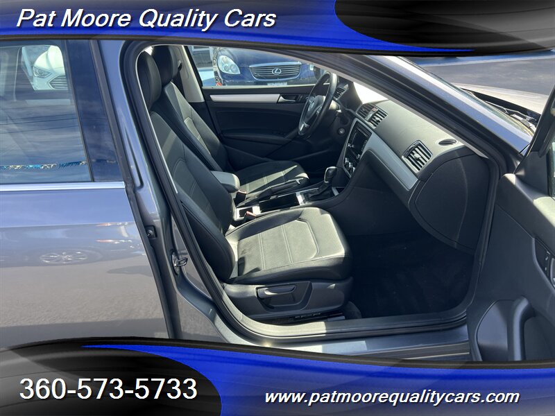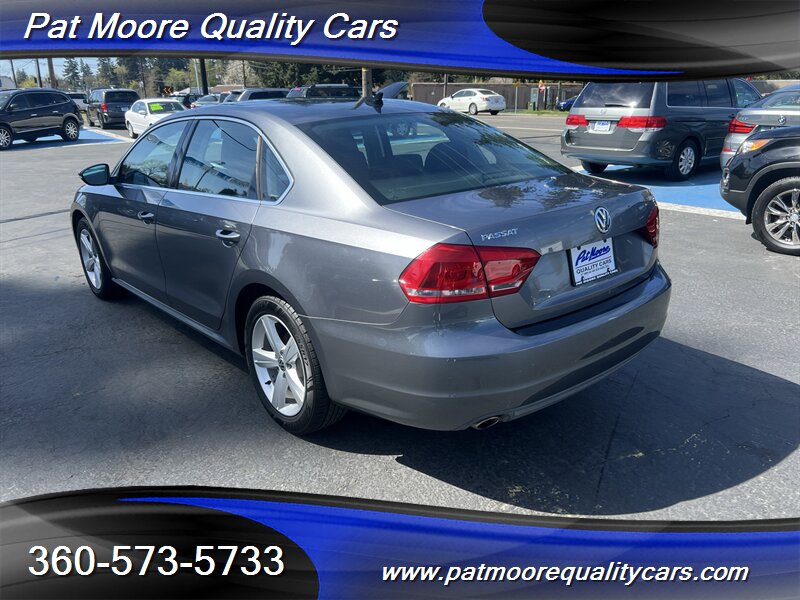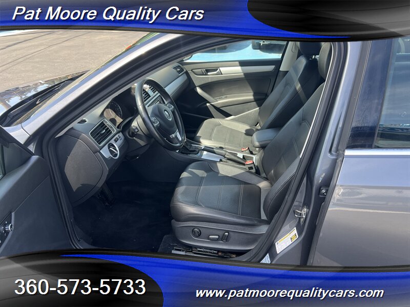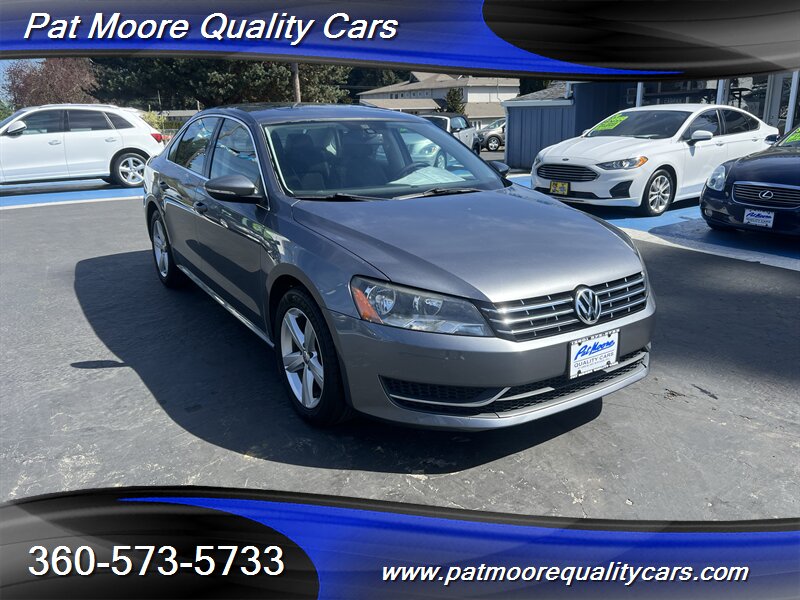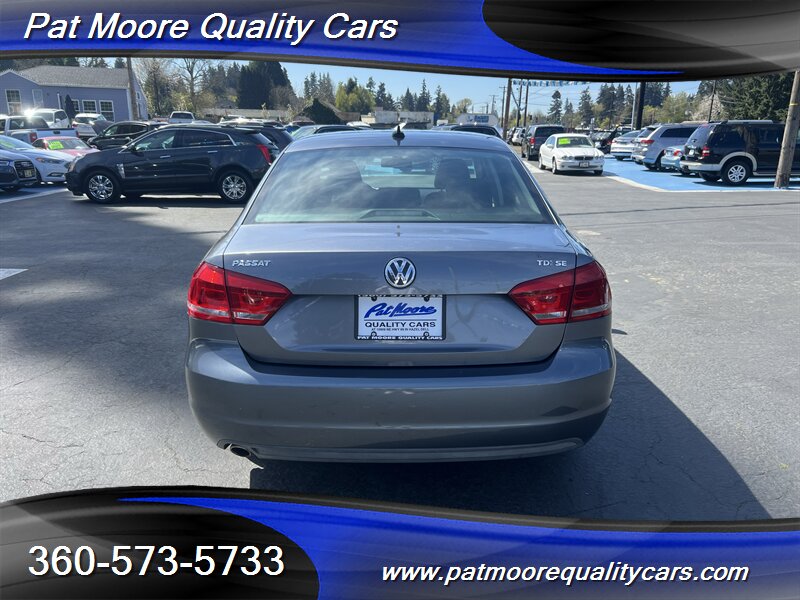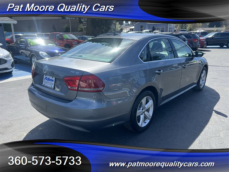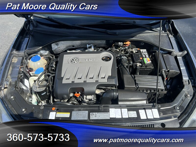 This 2012 Passat TDI SE combines diesel efficiency with a comfortable, well-equipped mid-size sedan package. The 2.0L turbocharged diesel four-cylinder delivers strong low-end torque (236 ft-lbs) and excellent highway mileage, paired with a smooth-shifting 6-speed transmission and front-wheel drive. The car presents in Platinum Gray Metallic with a Titan Black interior and has been lightly driven, reflected in its low mileage and clean vehicle history.